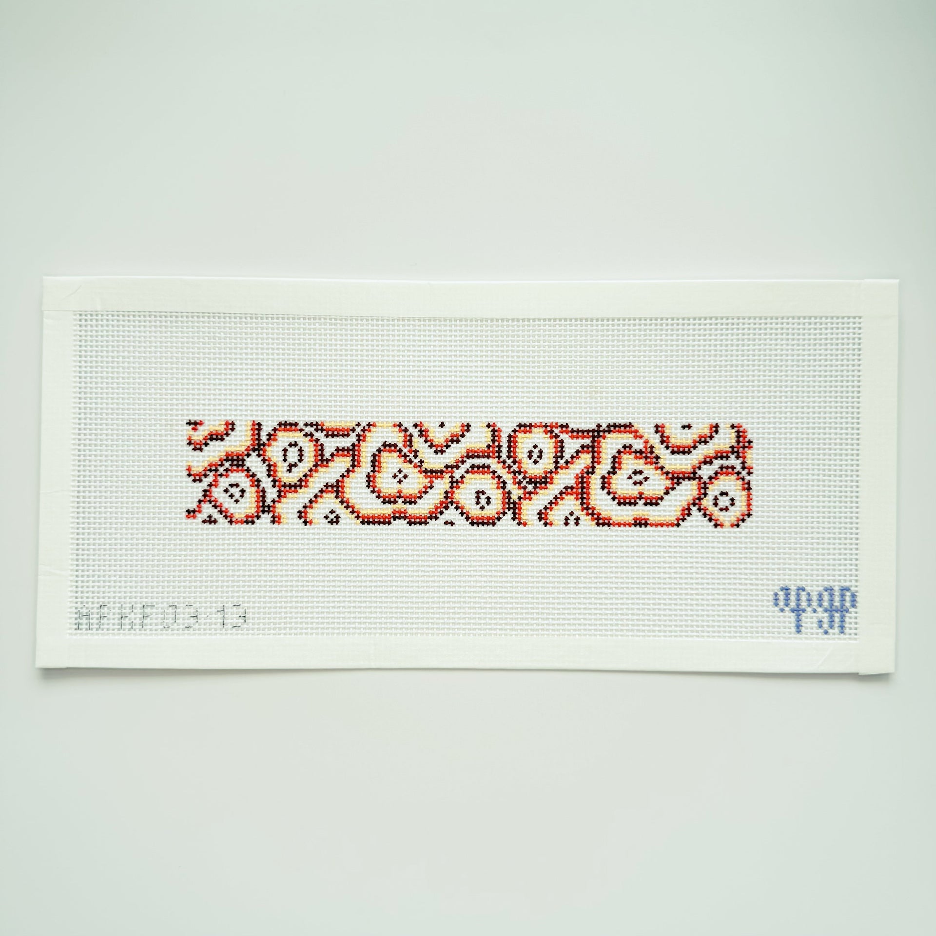 This is a stitch painted needlepoint canvas featuring a blue geode pattern great for key fobs or cuff bracelets.