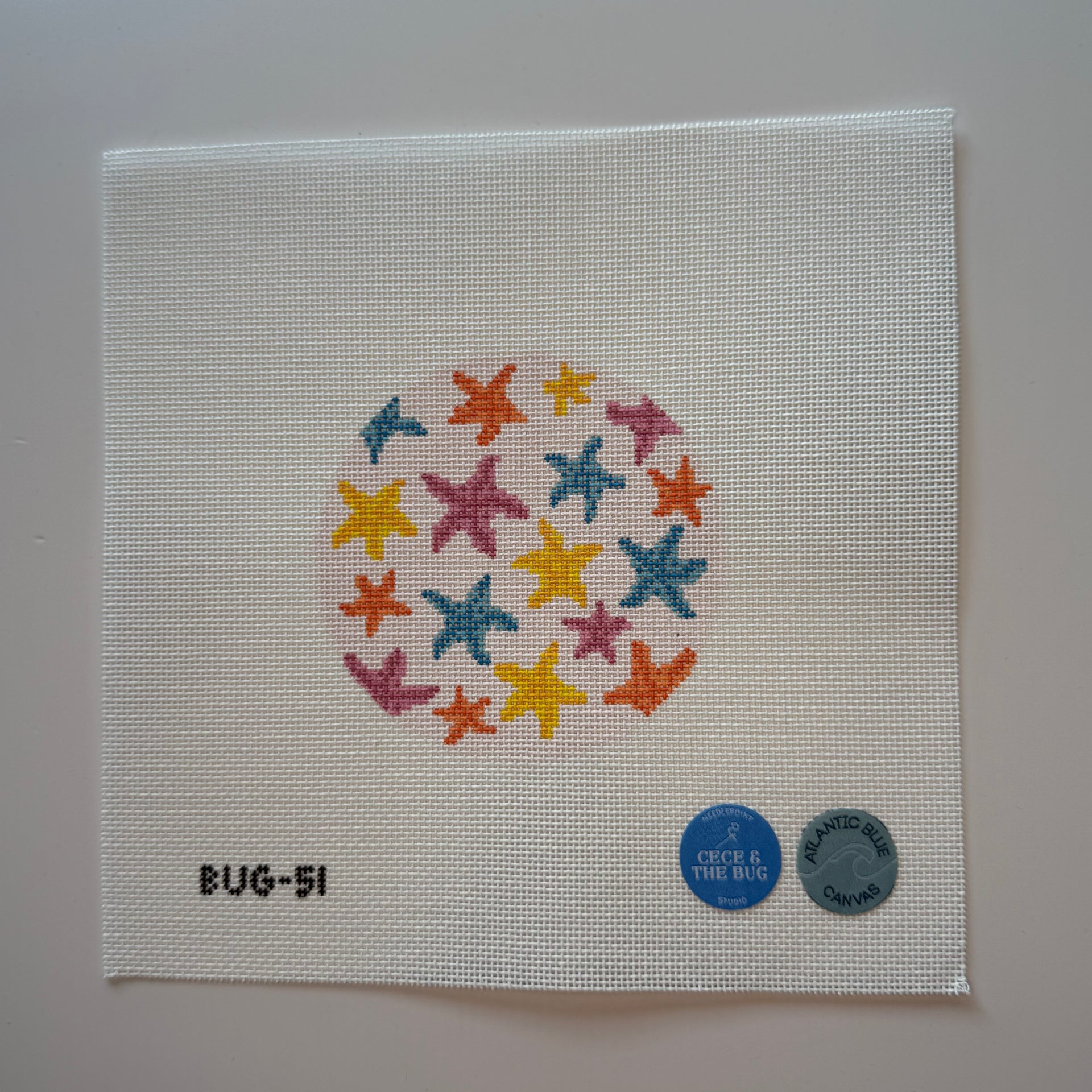 BUG-51 Starfish Coaster 18m , 18 mesh, Handpainted by Atlantic Blue Canvas, Design Size: 4" round
