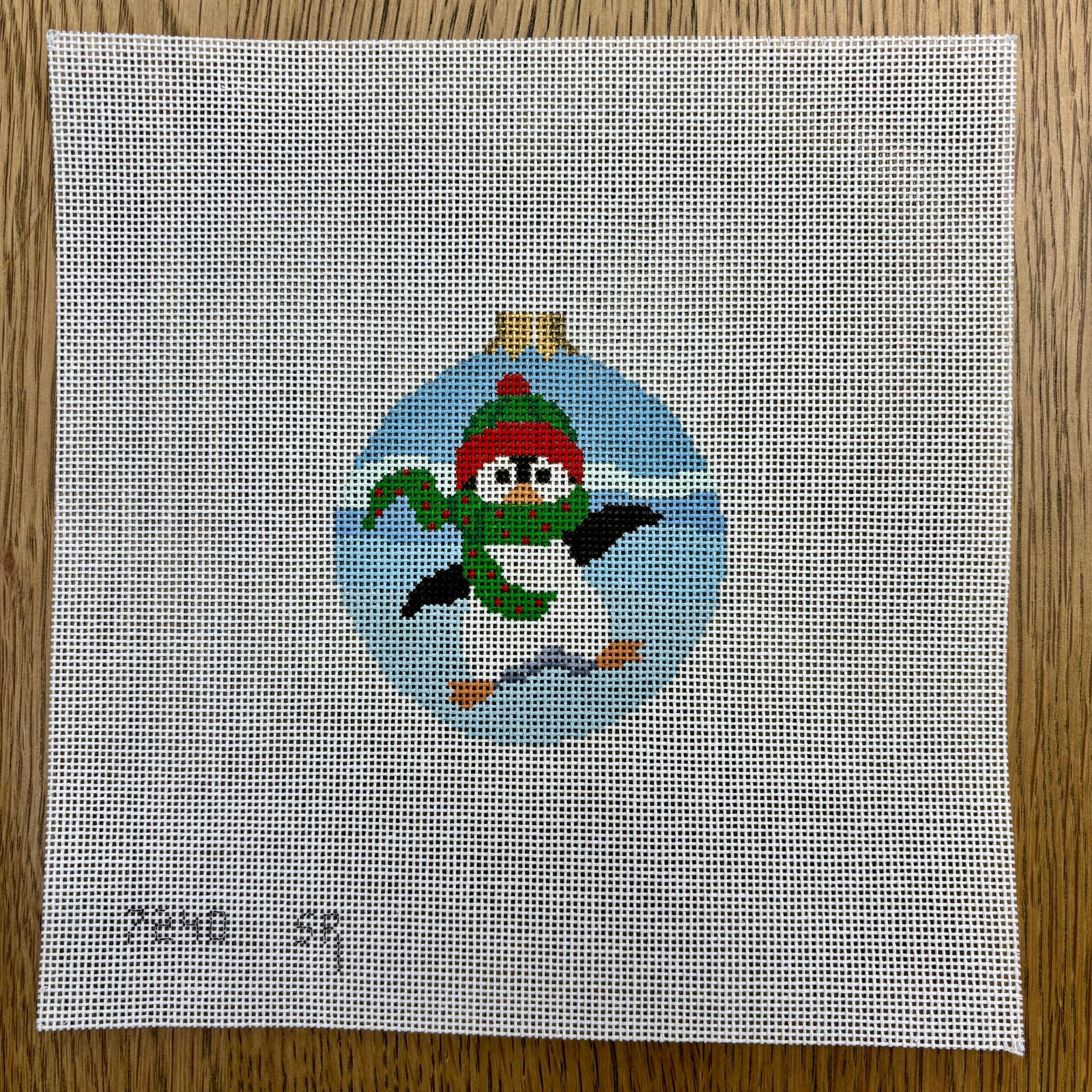 Dancing Penguin 7240, 18 mesh, Handpainted by Susan Roberts, Design Size: 3.25" Round