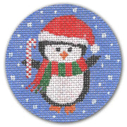 DK-EX46 Penguin with Candy Cane , 13 mesh, Handpainted by CBK Needlepoint, Design Size: 4" Round