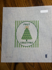 GP115c First Christmas Green , 18 mesh, Handpainted by Goodpoint Needlepoint, Design Size: 4.5 x 4"