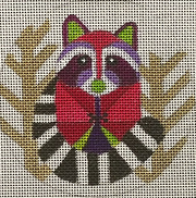 H326 Raccoon, 18 mesh, Handpainted by Melissa Prince, Design Size: 4" Round