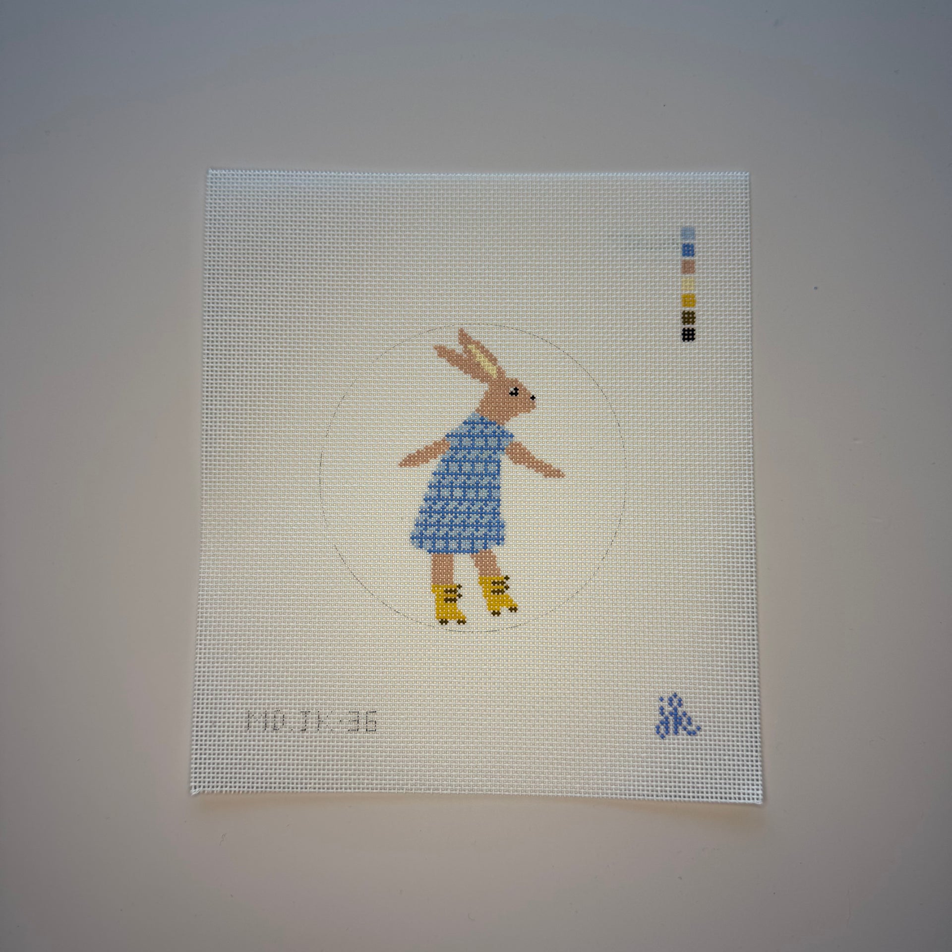 JK-36 Roller Bunny , 18 mesh, Handpainted by Mopsey Designs, Design Size: 4" round