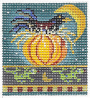 KC-KCN9149 Pumpkin Crow and Stitch Guide, 18 mesh, Handpainted by Kelly Clark for Colonial Needle, Design Size 2.95 x 3.125"