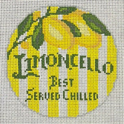 KDS-20 Happier Hour Coasters-Limoncello - TS, 18 mesh, Designed by Kirkland Design Studios for the Gingham Stitchery, Design Size: 4" Round