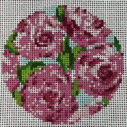 KJ27-14 Roses on Teal Round 14 mesh - TS, 14 mesh, Designed by Krissy Johnson Designs for the Gingham Stitchery, Design Size: 4" Round
