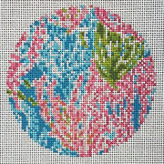 KJ28 Party Coral - TS, 18 mesh, Designed by Krissy Johnson Designs for the Gingham Stitchery, Design Size: 4" Round