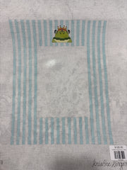 KKFR3 Frog Prince on Blue, 18 mesh, Handpainted by Kristine Kingston for Chris Lewis Distributing, Design Size: 8 x 10"