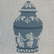 KW075 Wedgwood Ginger Jar - TS, 18 mesh, Designed by Kate Woodward for the Gingham Stitchery, Design Size: 4.5 x 2.5"