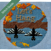 Let's Hang, 18 mesh, Handpainted by Maddie Sweet for the Gingham Stitchery, Design Size: 4" Round.
