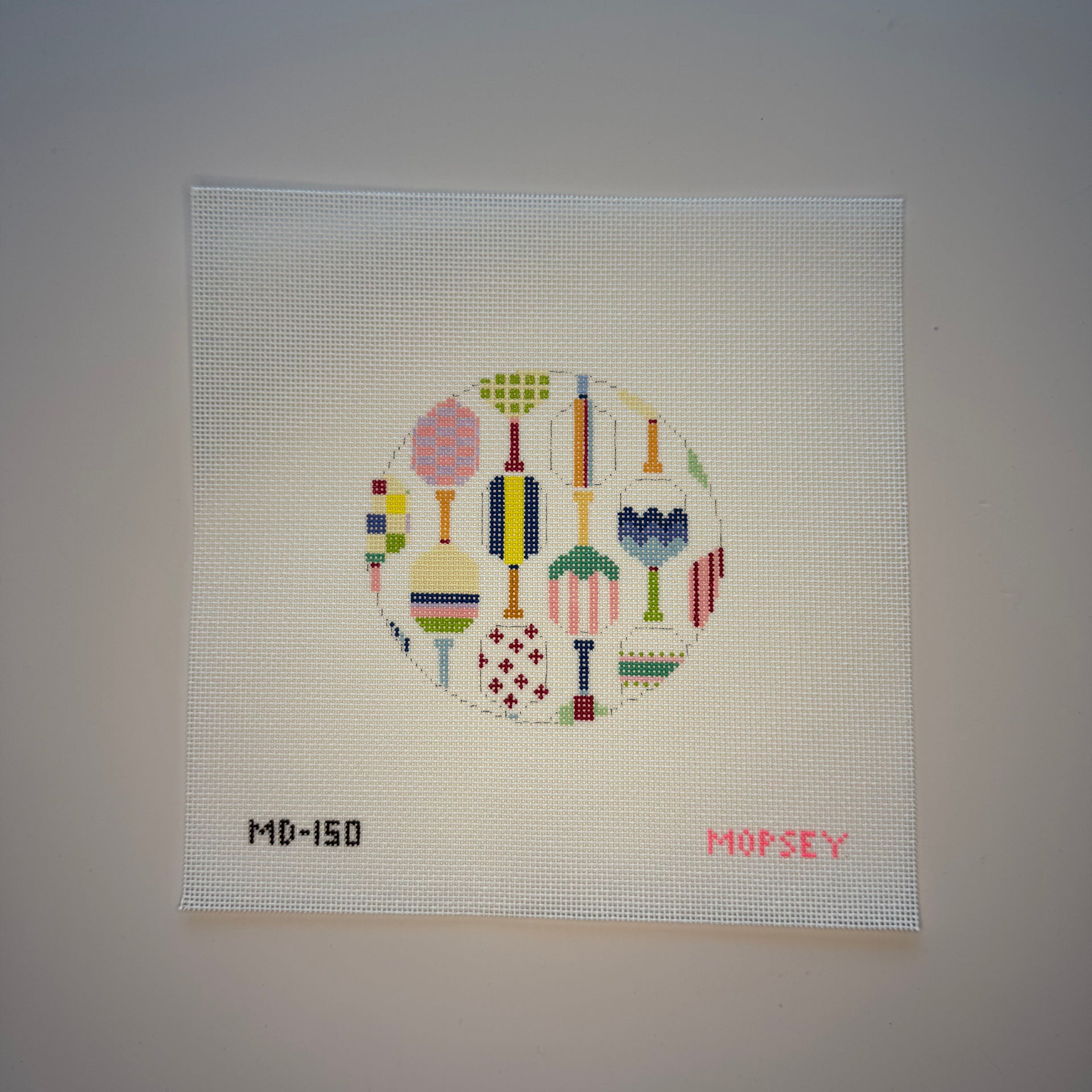 MD-150 Pickle Paddle Round , 18 mesh, Handpainted by Mopsey Designs, Design Size: 4" round