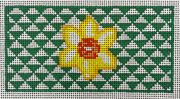 ML09 Green Triangle Insert w/ Daffodil - TS, 13 mesh, Designed by Maiden Lane for the Gingham Stitchery, Design Size: 3 x 6"