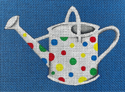 ML29 Polka Dot Watering Can - TS, 18 mesh, Designed by Maiden Lane for the Gingham Stitchery, Design Size: 3.75 x 5.25"