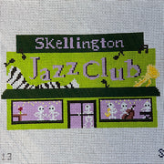 MS58-13 Skellington Jazz Bar-13 Mesh - TS, 13 mesh, Designed by Maddie Sweet Designs for the Gingham Stitchery, Design Size: 5.2 x 8.8"