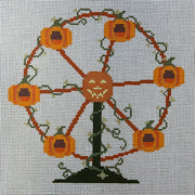 MS61-18 Pumpkin Ferris Wheel-18 mesh - TS, 18 mesh, Designed by Maddie Sweet Designs for the Gingham Stitchery, Design Size: 6 x 6"