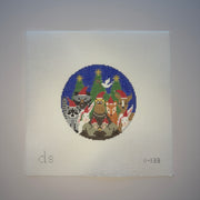 O-138 Forest Friends Ornament , 18 mesh, Handpainted by Doolittle Stitchery, Design Size: 4" round