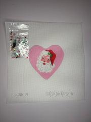 OMD-19 Vintage Santa on Pink with Glitter and Heart Dome , 18 mesh, Handpainted by Kate Dickerson, Design Size: 4 x 4"