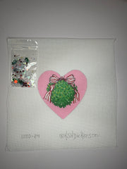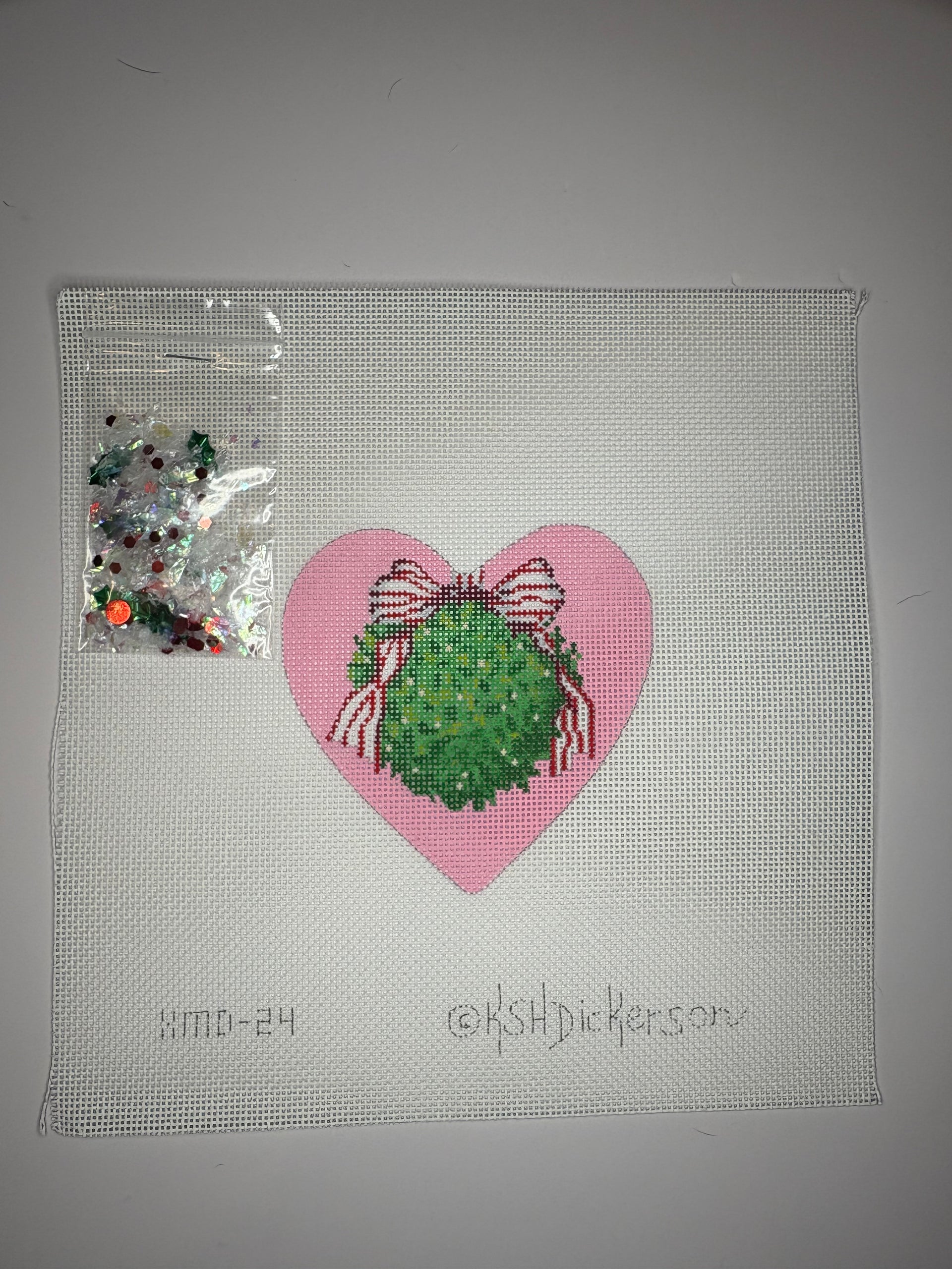 OMD-24 Kissing Ball on Pink with Glitter and Heart Dome , 18 mesh, Handpainted by Kate Dickerson, Design Size: 4 x 4"