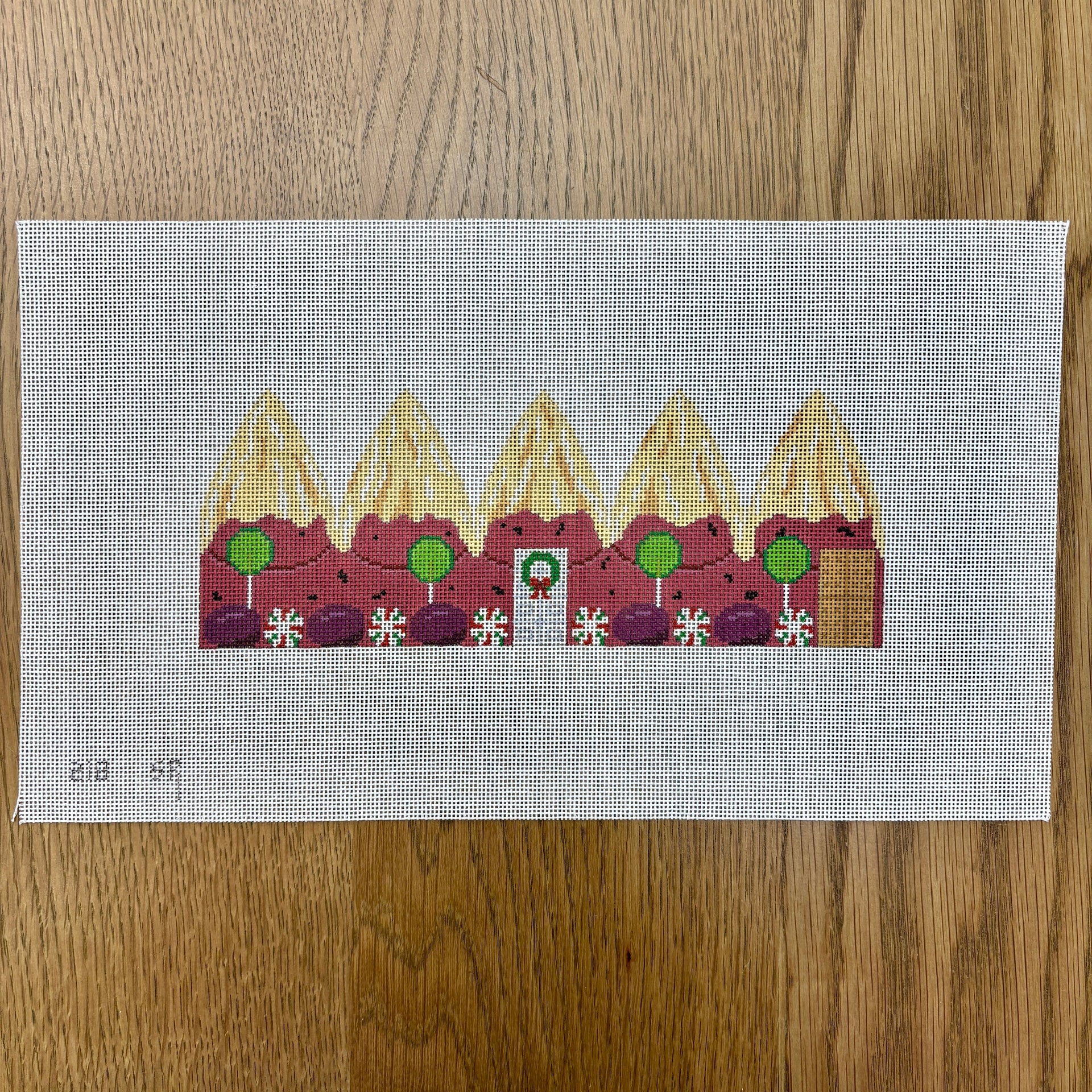 SR0218-18 Plum Pudding, 3D Gingerbread Dome - 18 mesh - TS, 18 mesh, Handpainted by Susan Roberts, Design Size: 9 x 3.5"; 3 x 2.5" finished size