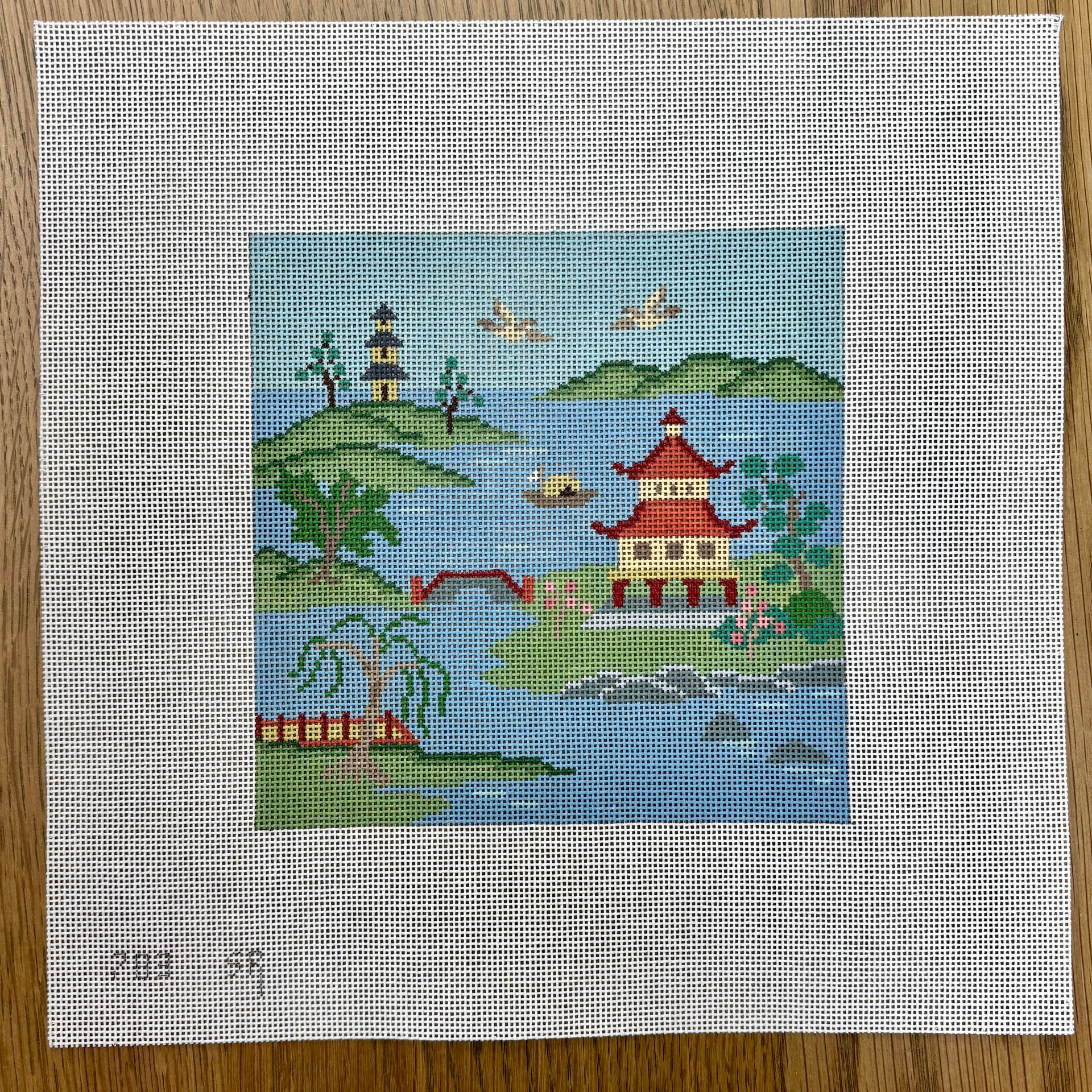 SR0783 Japanese Inlet, Colors, 6" Square - 18 mesh - TS, 18 mesh, Handpainted by Susan Roberts, Design Size: 6 x 6"