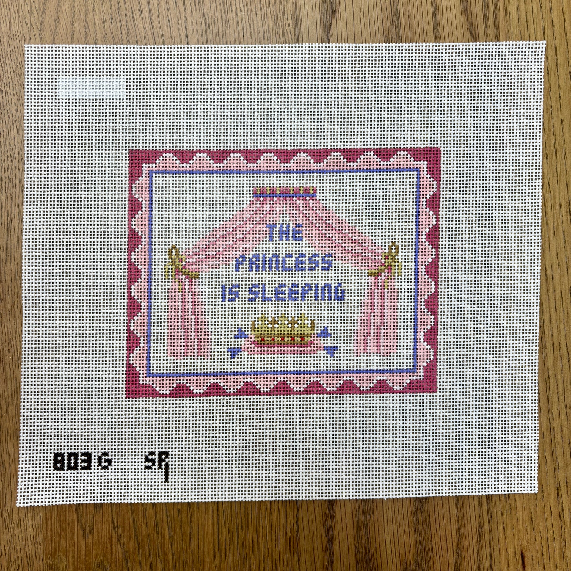 SR0803G The Princess Is Sleeping, Sign - 13 mesh - TS, 13 mesh, Handpainted by Susan Roberts, Design Size: 7 x 5.5"