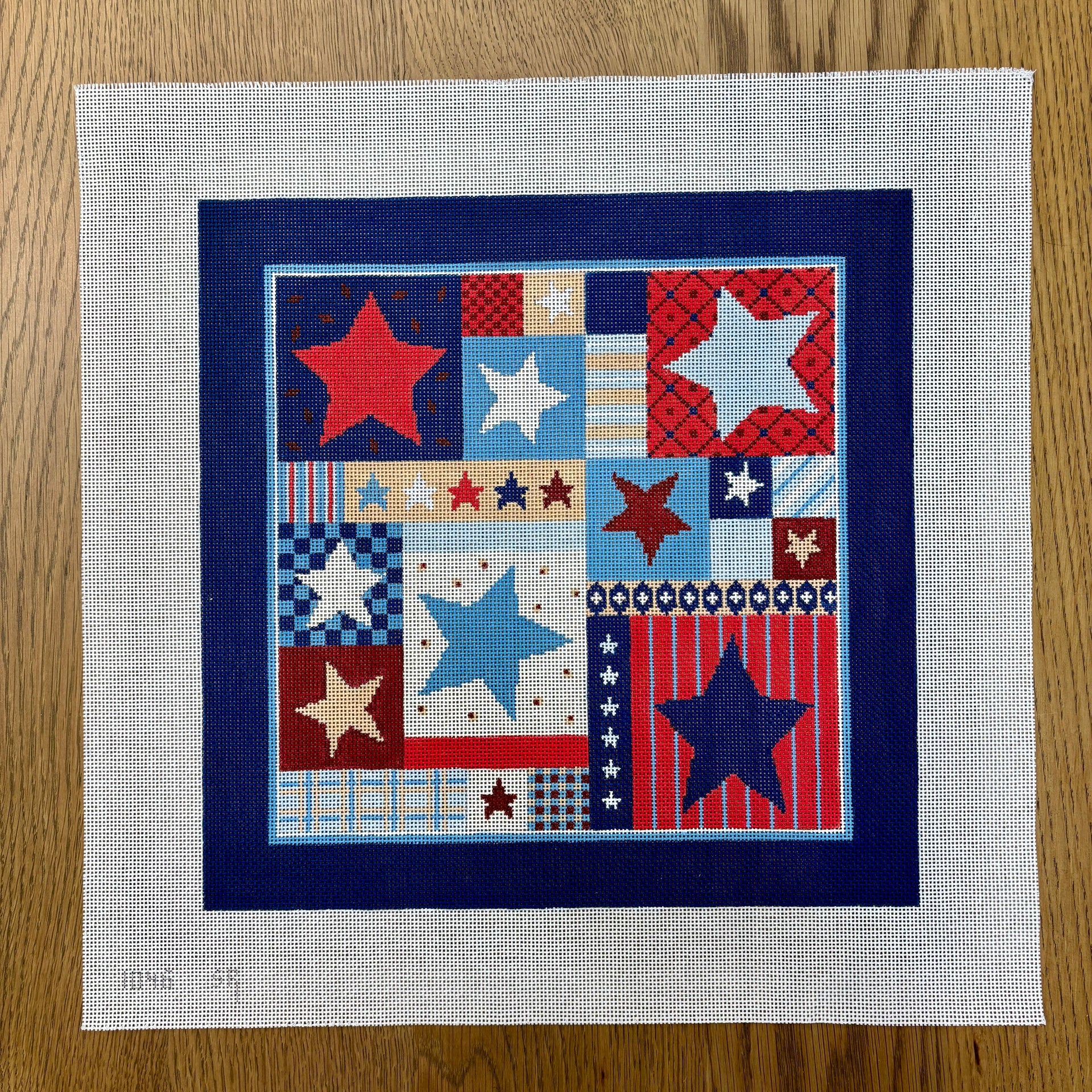 SR1046 Star Patchwork - 13 mesh - TS, 13 mesh, Handpainted by Susan Roberts, Design Size: 12 x 12"