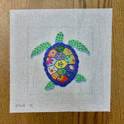 SR1074-18 Turtle Garden, 7" Square - 18 mesh - TS, 18 mesh, Handpainted by Susan Roberts, Design Size: 7 x 7"