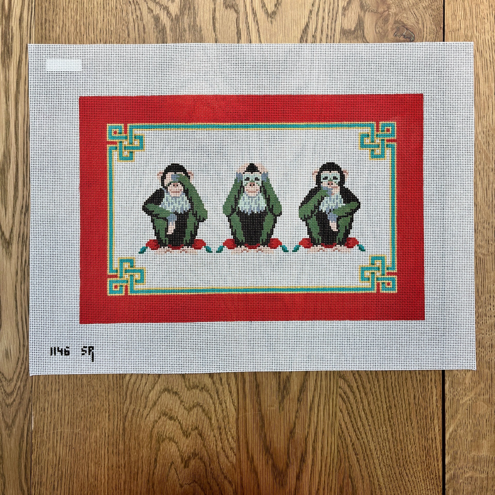 SR1146 Hear, See, Speak No Evil - Red - TS, 13 mesh, Handpainted by Susan Roberts, Design Size: 15 x 10"