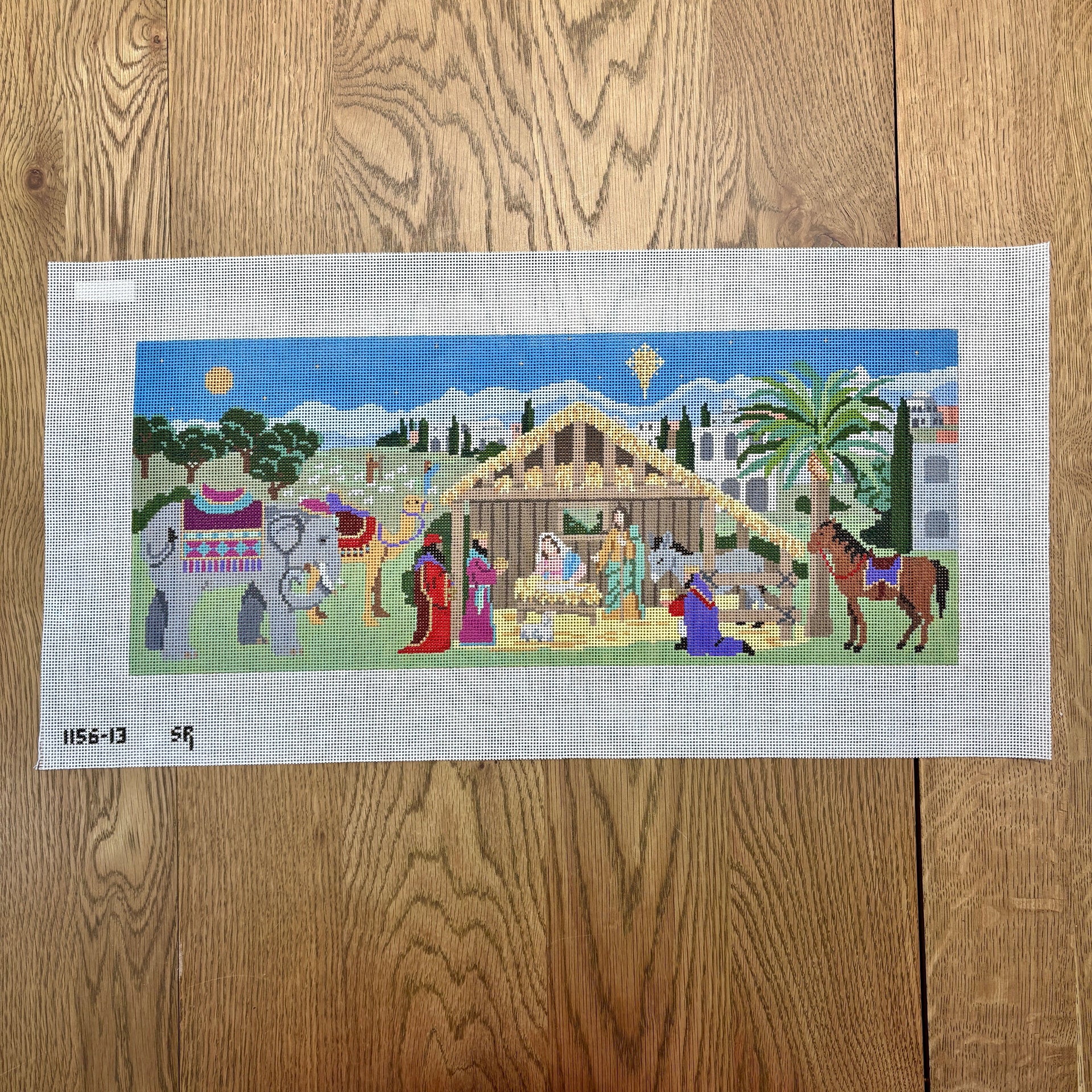 SR1156-13 Nativity Stable - 13 mesh - TS, 13 mesh, Handpainted by Susan Roberts, Design Size: 22 x 11"