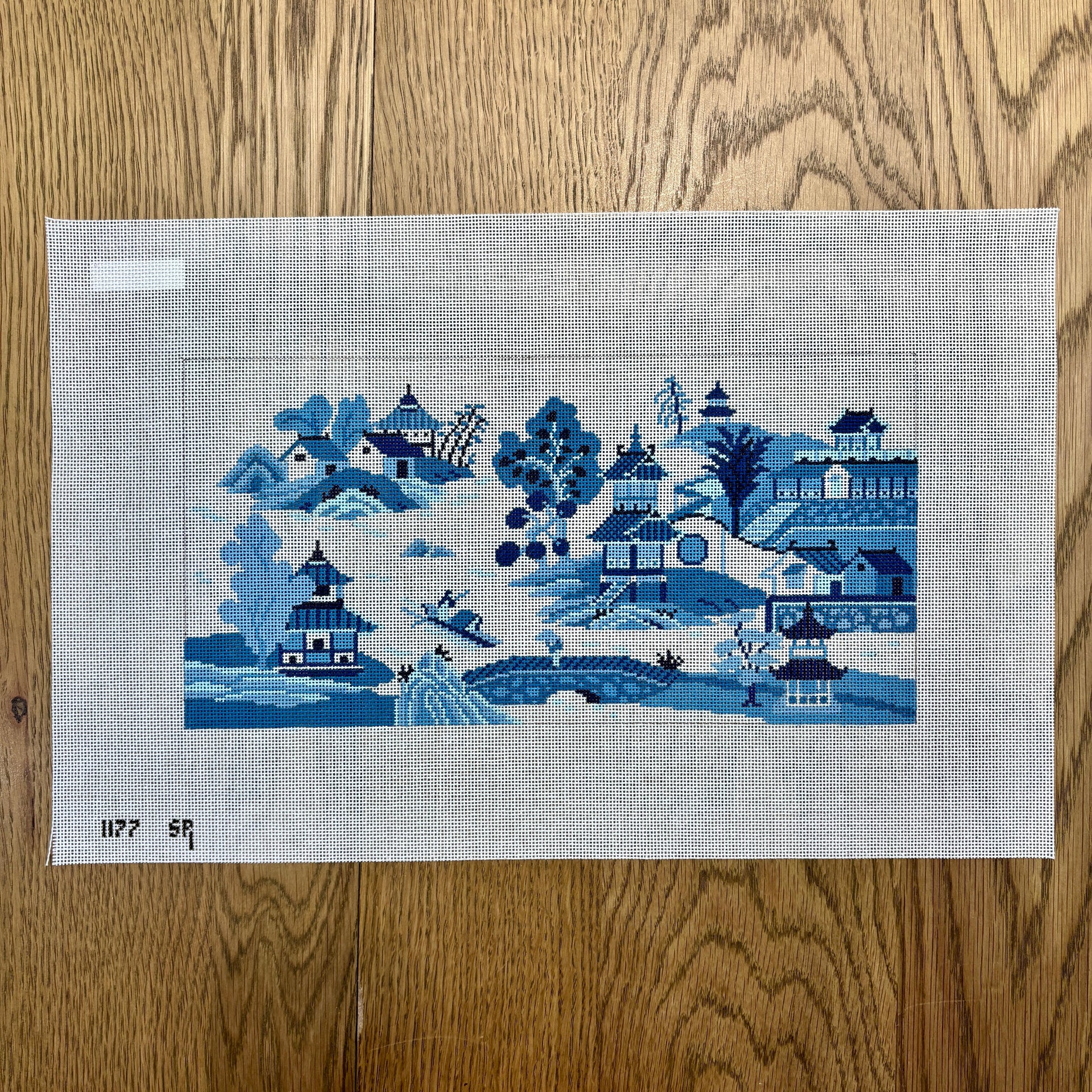 SR1177 Blue Porcelain - 18 mesh - TS, 18 mesh, Handpainted by Susan Roberts, Design Size: 12 x 6"