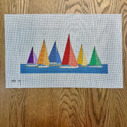 SR1183 Resting Sailboats - 18 mesh - TS, 18 mesh, Handpainted by Susan Roberts, Design Size: 6.75 x 12.75"