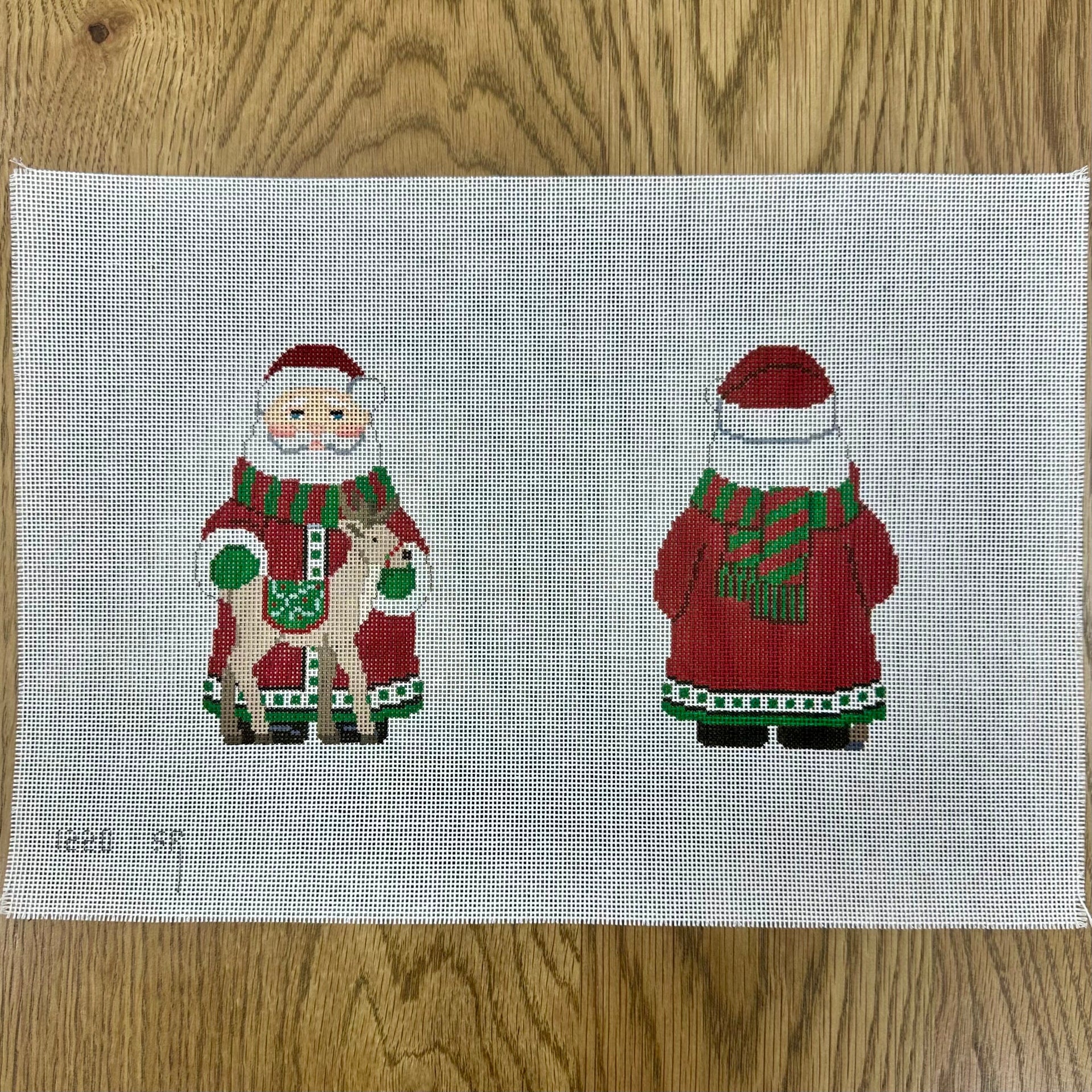 SR1220 Long Red Coat Santa and Reindeer, 2 sided - 18 mesh - TS, 18 mesh, Handpainted by Susan Roberts, Design Size: 5" tall, 2 sided