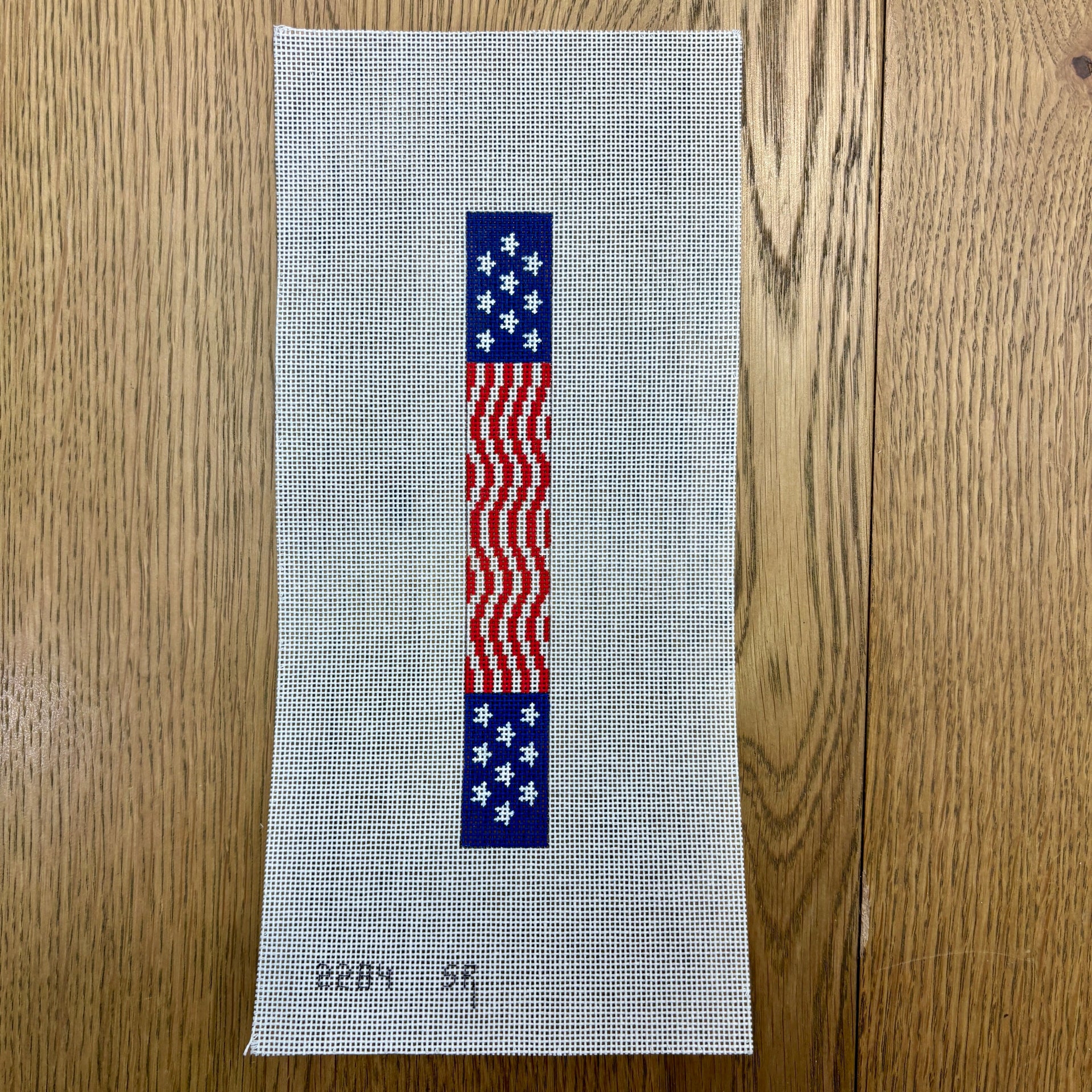SR2284 US Flag Wave, Key Fob - TS, 18 mesh, Handpainted by Susan Roberts, Design Size: 1 x 7.5"