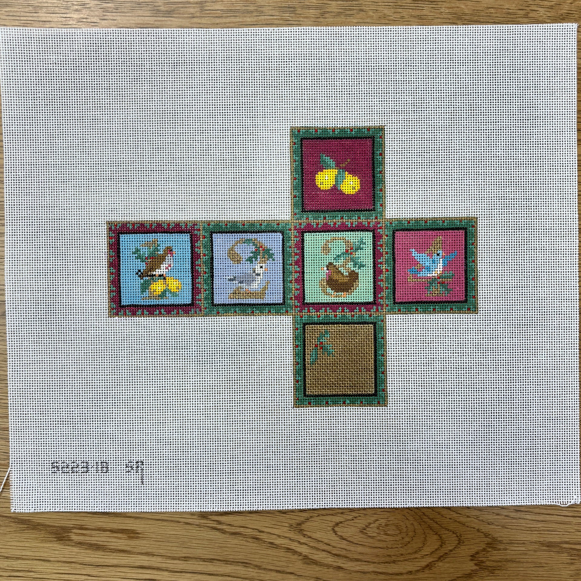 SR5223-18 Pear Tree 1,2,3,4, 2" Cube - 18 mesh - TS, 18 mesh, Handpainted by Susan Roberts, Design Size: 2" cube