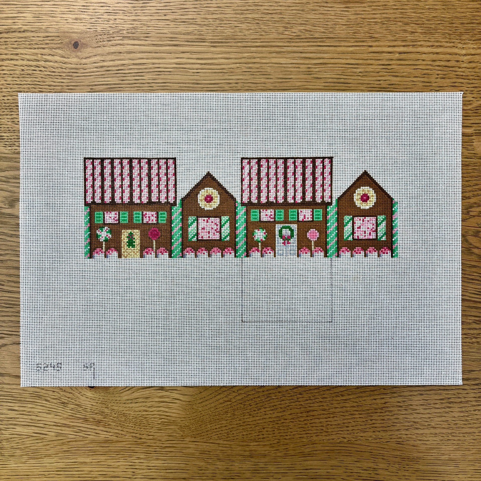 SR5245-18 Peppermint and Dark Chocolate, 3D Gingerbread House - 18 mesh - TS, 18 mesh, Handpainted by Susan Roberts, Design Size: 10.5 x 5.5"; 3 x 2.25 x 3" finished size