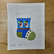SR5452 Patchwork Snowman, Mini Stocking - TS, 13 mesh, Handpainted by Susan Roberts, Design Size: 6.25" tall