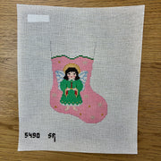 SR5490 Angel on Pink, Mini Stocking - TS, 13 mesh, Handpainted by Susan Roberts, Design Size: 6.25" tall
