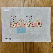 SR5514-18 Valentines House, Mini House - 18 mesh - TS, 18 mesh, Handpainted by Susan Roberts, Design Size: 9 x 5"; 2.5 x 2.75 x 2" finished size