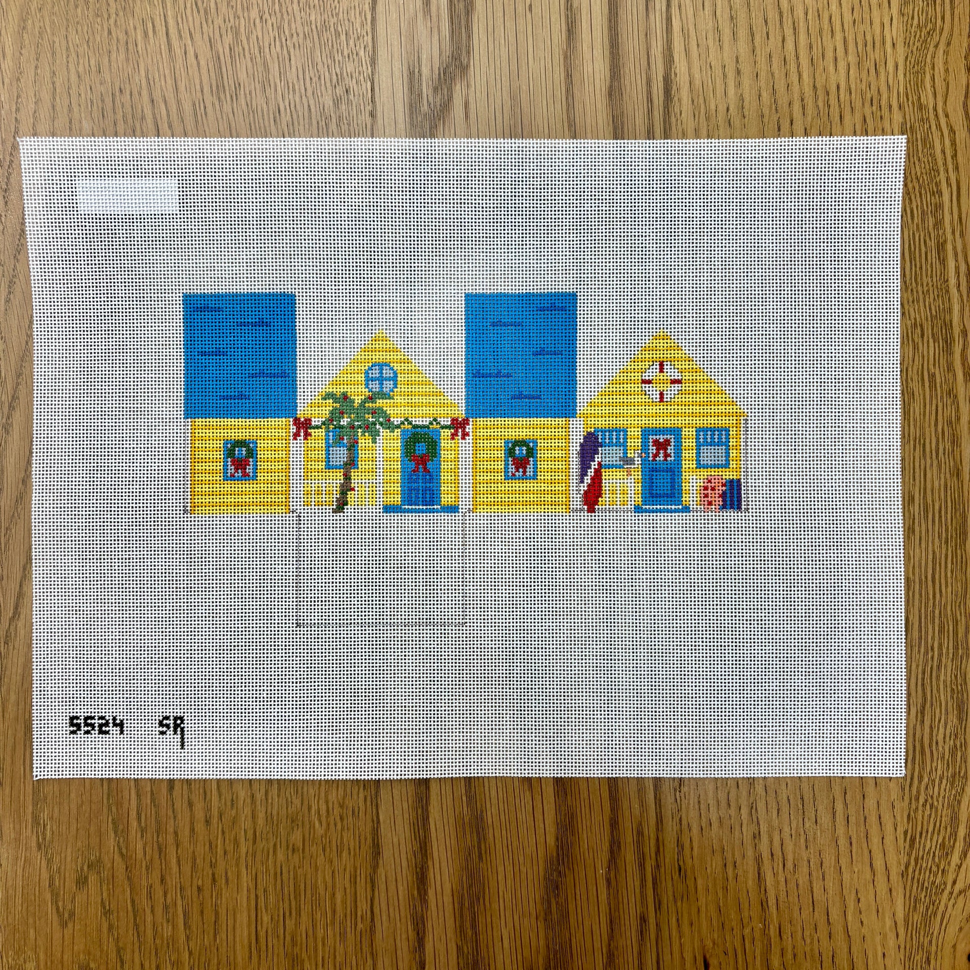 SR5524 Yellow Beach House, Mini House - 18 mesh - TS, 18 mesh, Handpainted by Susan Roberts, Design Size: 9 x 5"; 2.5 x 2.75 x 2" finished size