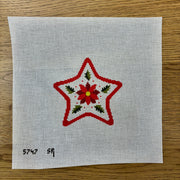 SR5747 Star, Poinsettia Star - TS, 18 mesh, Handpainted by Susan Roberts, Design Size: 4 x 4.25"