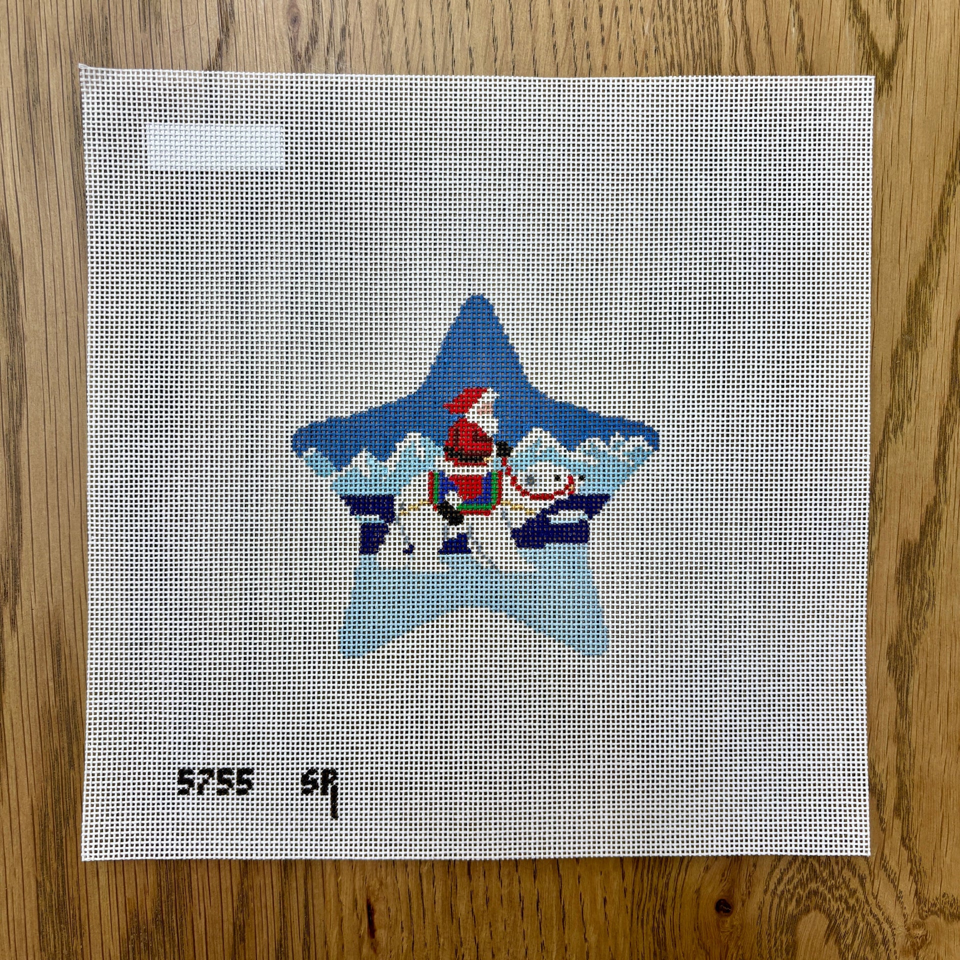 SR5755 Star, Santa On Polar Bear - TS, 18 mesh, Handpainted by Susan Roberts, Design Size: 4 x 4.25"