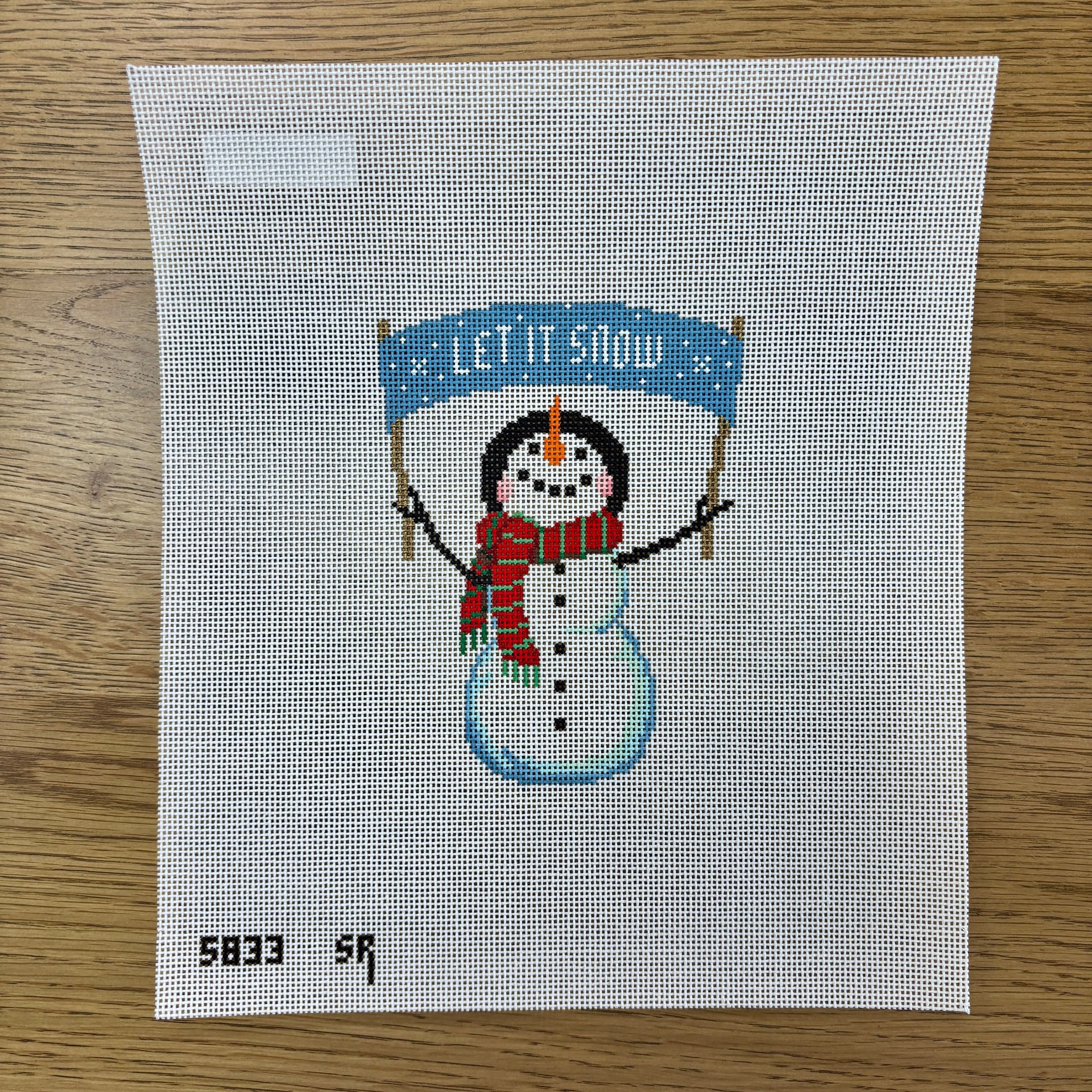 SR5833 Banner Snowman, Ornament - TS, 18 mesh, Handpainted by Susan Roberts, Design Size: 3.75 x 5"