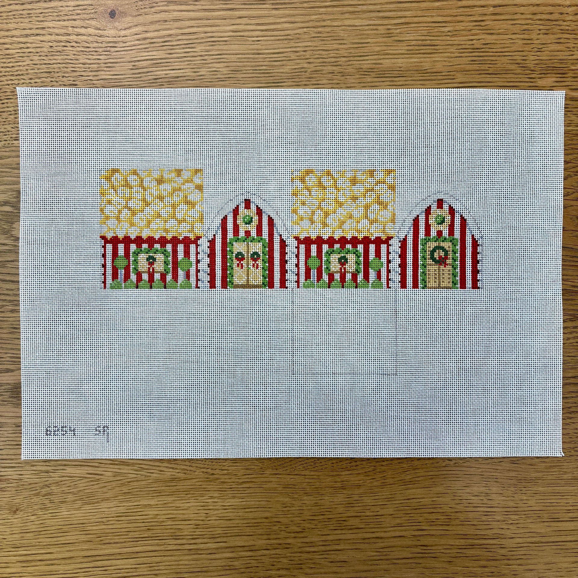 SR6254 Popcorn, 3D Gingerbread House - 18 mesh - TS, 18 mesh, Handpainted by Susan Roberts, Design Size: 11 x 6"; 3 x 2.5 x 2.75" finished size