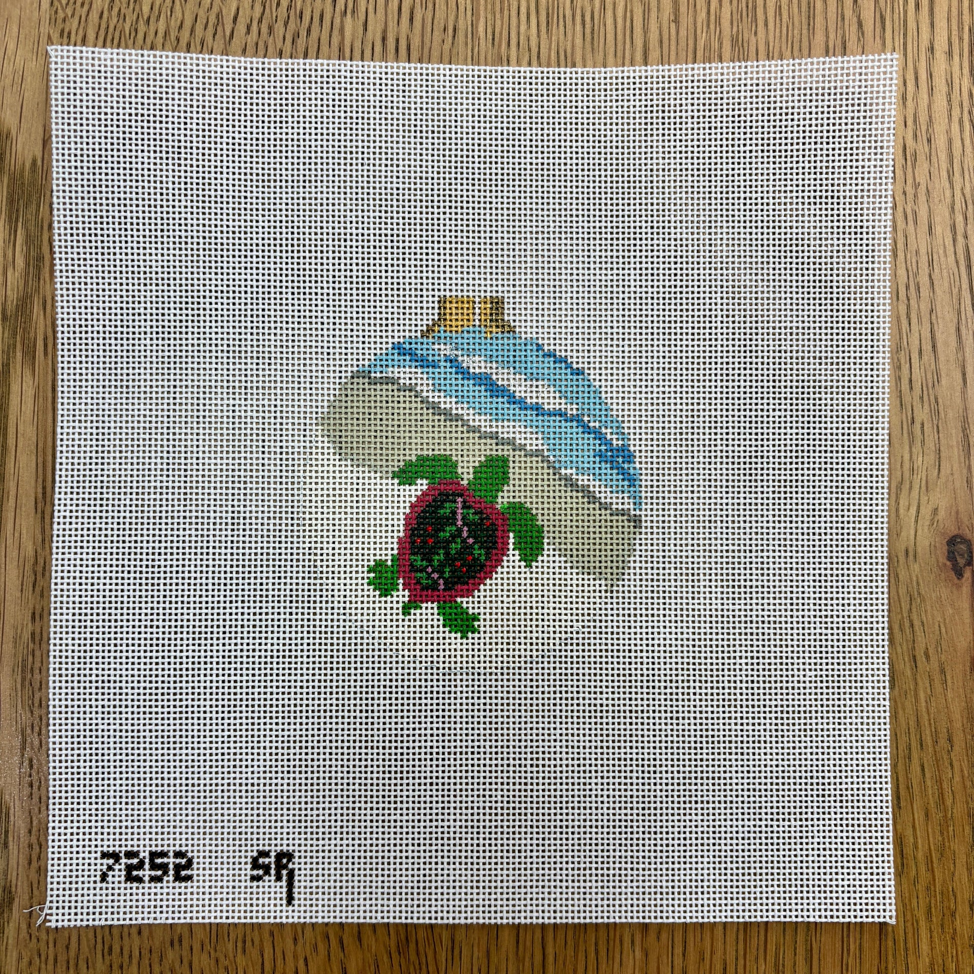 SR7252 Christmas Turtle, 3.25" Round - TS, 18 mesh, Handpainted by Susan Roberts, Design Size: 3.25" Round