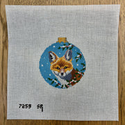 SR7259 Baby Fox in Holly, 3.25" Round - TS, 18 mesh, Handpainted by Susan Roberts, Design Size: 3.25" Round