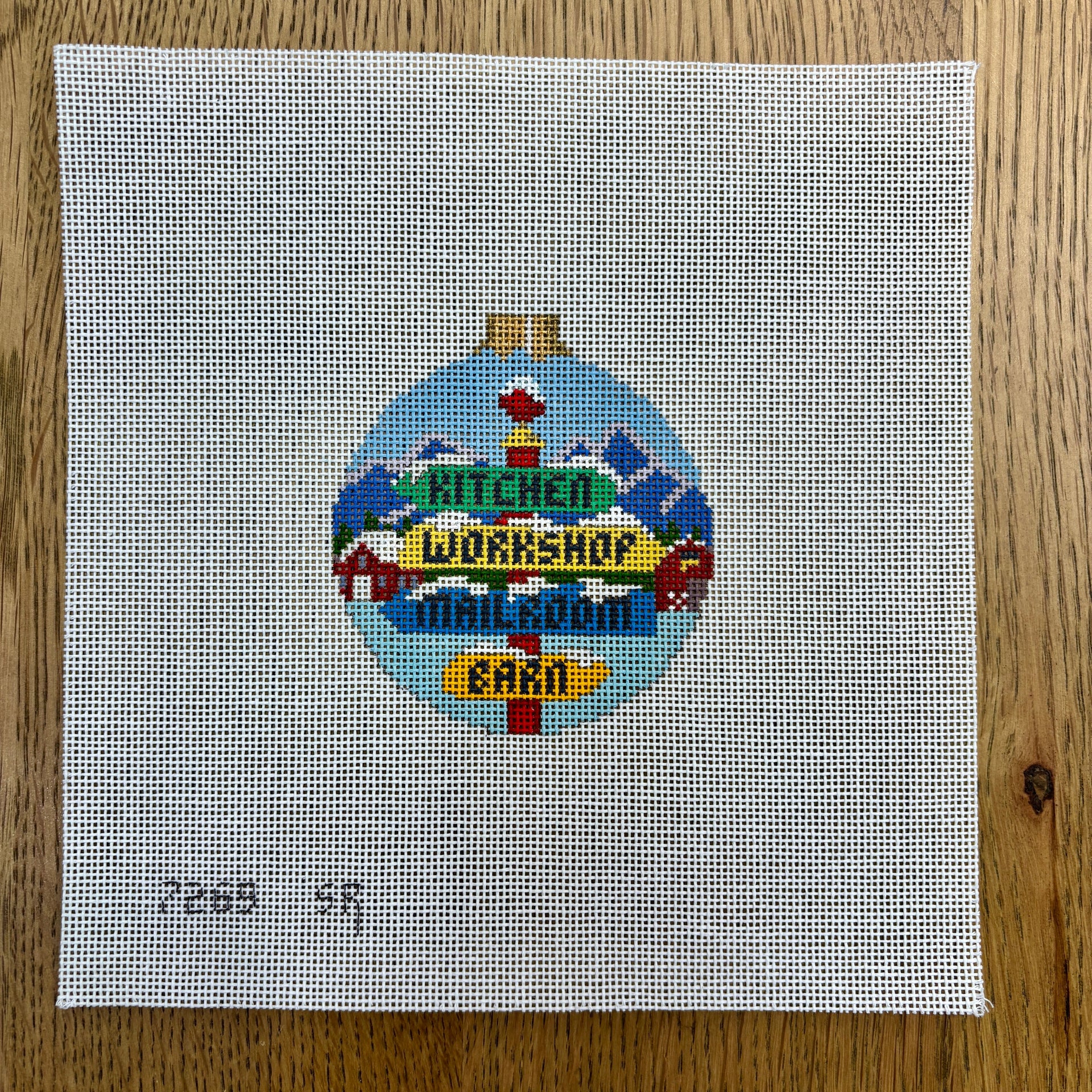 SR7269 North Pole Signs, 3.25" Round - TS, 18 mesh, Handpainted by Susan Roberts, Design Size: 3.25" Round