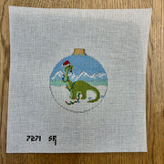 SR7271 Dinosaur In Lights, 3.25" Round - TS, 18 mesh, Handpainted by Susan Roberts, Design Size: 3.25" Round