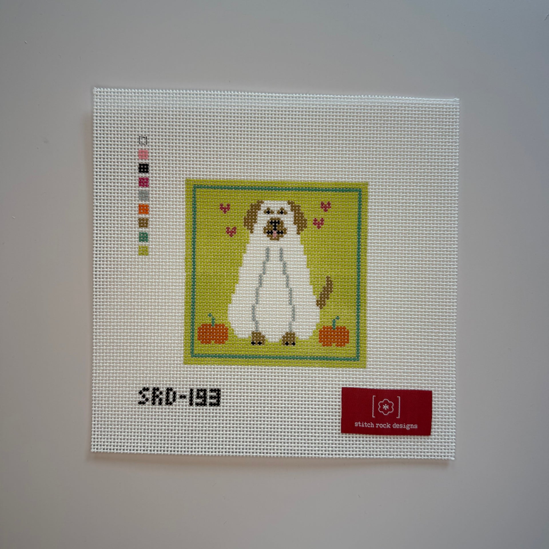 SRD-193 Ghosty Pup , 13 mesh, Handpainted by Stitch Rock Designs, Design Size: 4" square