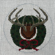 SS67 Whitetail Antlers w/ Holly Wreath - TS, 18 mesh, Designed by The Squirrel and The Snail for the Gingham Stitchery, Design Size: 4 x 4"