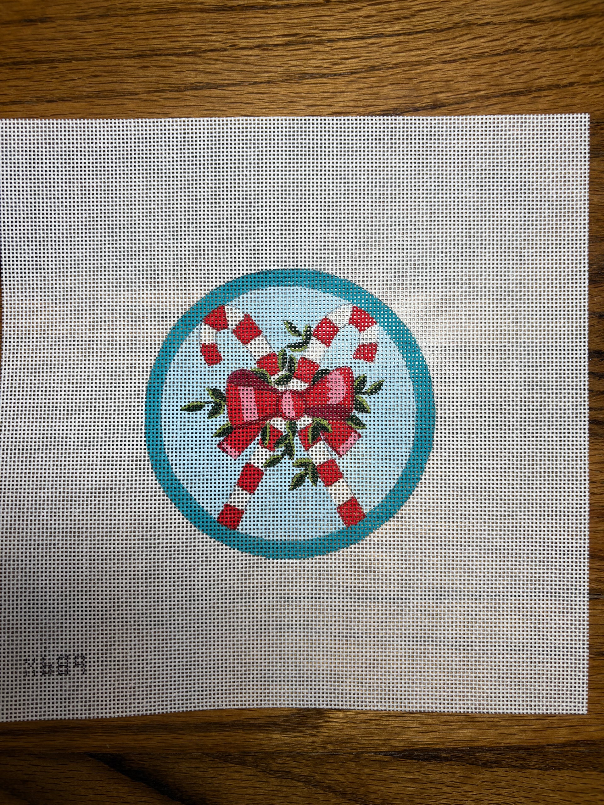X689 Candy Canes Round , 18 mesh, Handpainted by Alice Peterson, Design Size: 4" Round